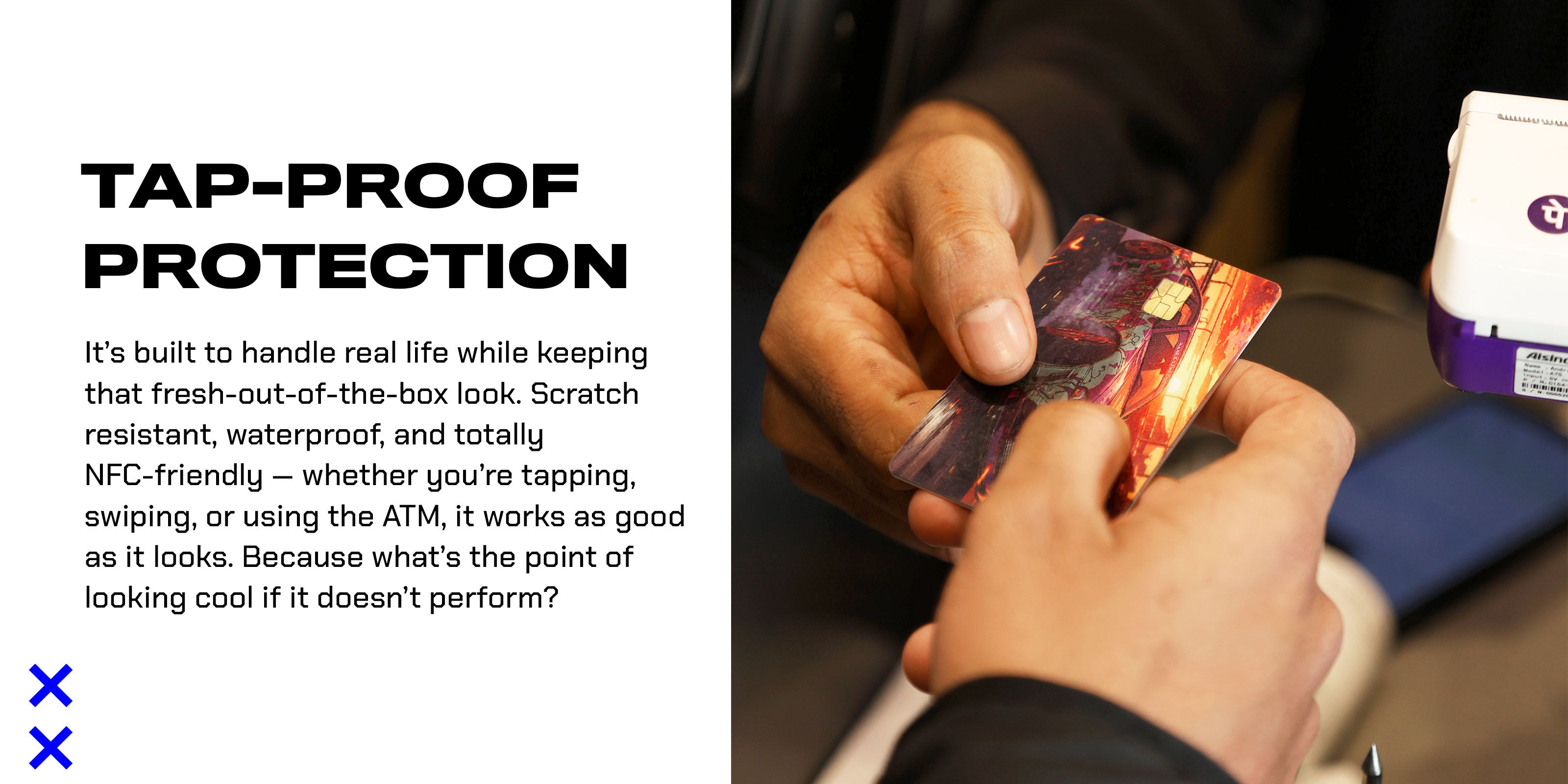 Swipe, tap, toss — your card’s safe. Scratch-resistant, waterproof, and fade-resistant skin keeps it looking fresh, day after day.