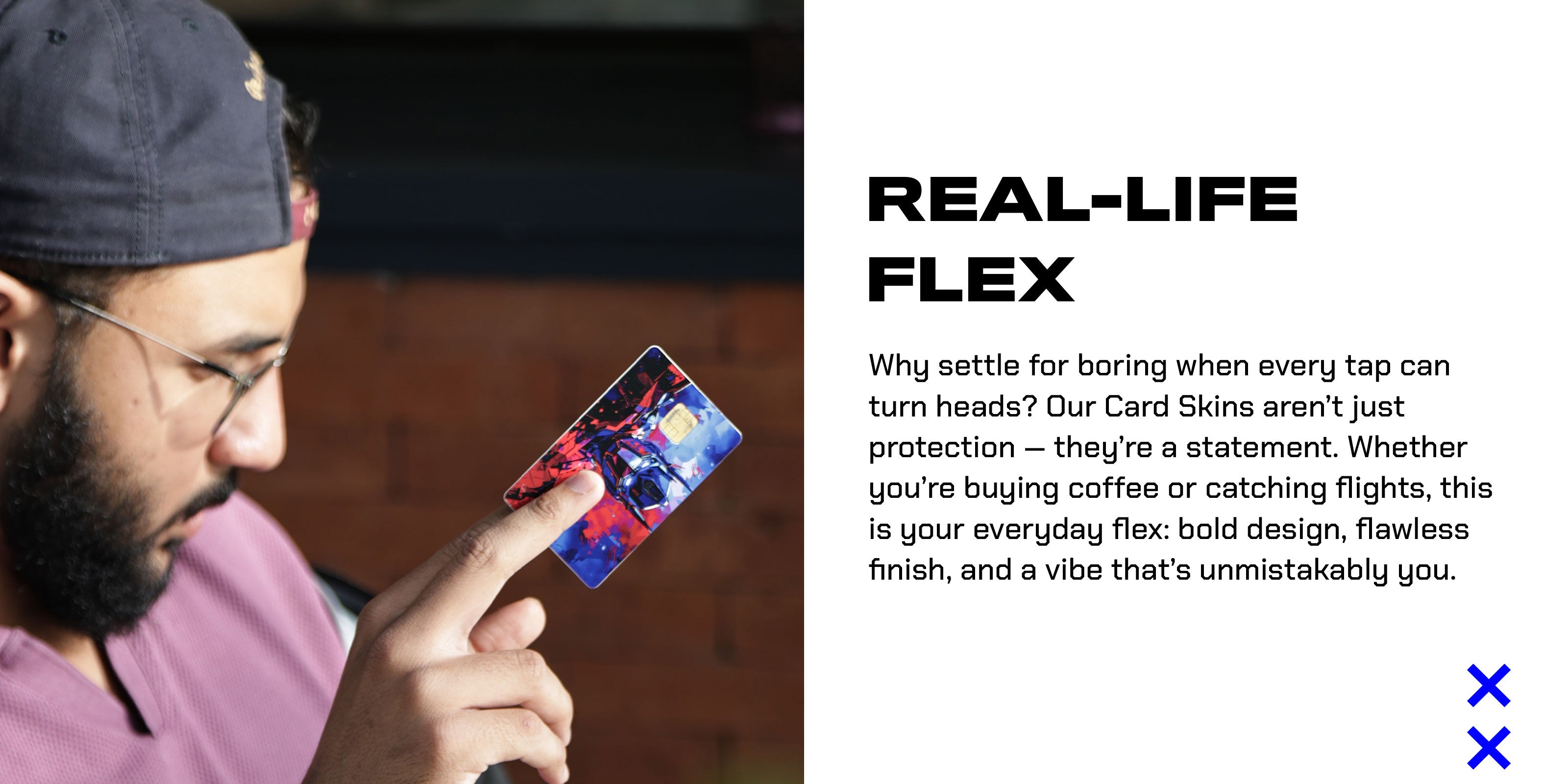 Your card deserves personality. Pick a design that matches your mood — or flex your own with a custom print.